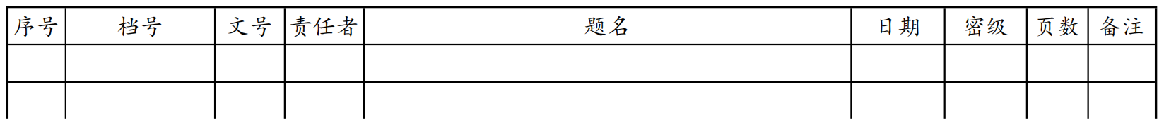 5.5.2歸檔文件應(yīng)逐件編目。來文與復(fù)文作為一件時,對復(fù)文的編目應(yīng)體現(xiàn)來文內(nèi)容。歸檔文件目錄設(shè) 置序號、檔號、文號、責(zé)任者、題名、日期、密級、頁數(shù)、備注等項目。