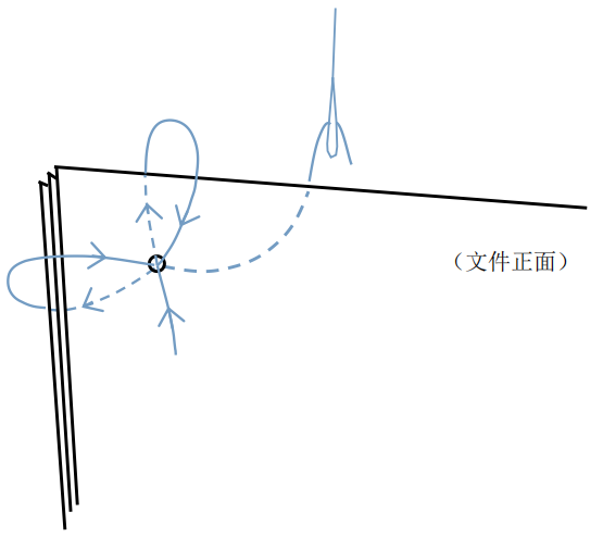 6.2.4永久保管的歸檔文件,宜采取線裝法裝訂。頁數(shù)較少的,使用直角裝訂(見附錄 C 圖 C1、圖 C2) 或縫紉機(jī)軋邊裝訂,文件較厚的,使用“三孔一線”裝訂。永久保管的歸檔文件,使用不銹鋼訂書釘或漿糊裝訂的,裝訂材料應(yīng)滿足歸檔文件長期保存的需要。
