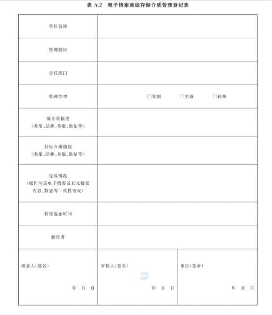 i) 確認(rèn)離線存儲介質(zhì)的復(fù)制、更新和轉(zhuǎn)換等管理活動成功時,再按照相關(guān)規(guī)定對原離線存儲介質(zhì)GB/T18894-2016實施破壞性銷毀。應(yīng)對離線存儲介質(zhì)管理活動進(jìn)行登記,登記內(nèi)容參見表A2.