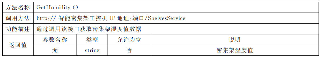 表 B.9  獲取密集架濕度