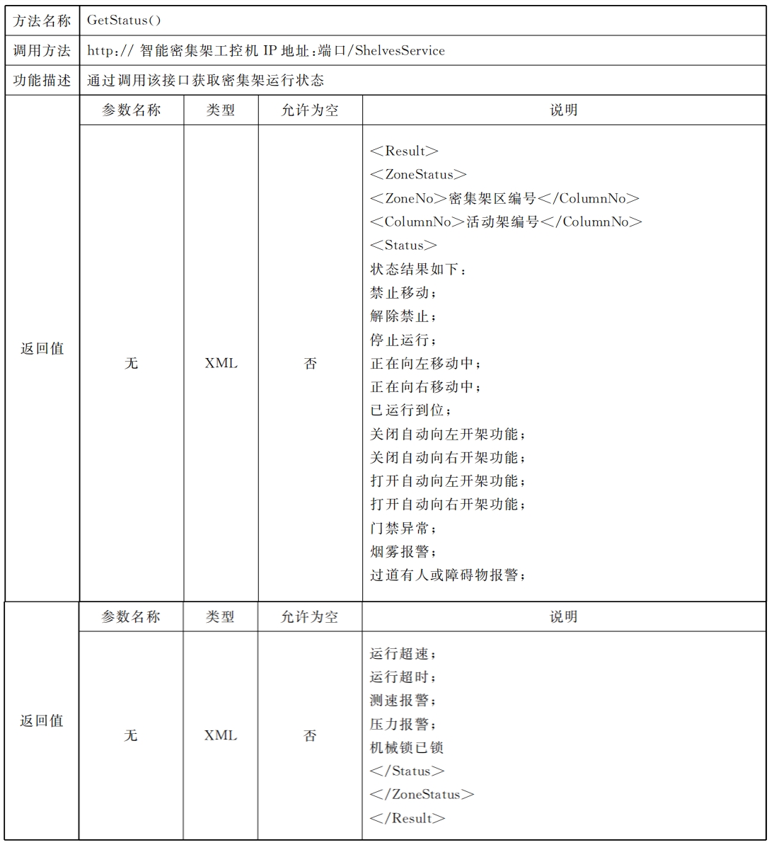 表 B.11  獲取密集架運行狀態(tài)