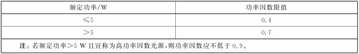 4.2.5 LED光源的功率因數(shù)應(yīng)符合表1的規(guī)定。