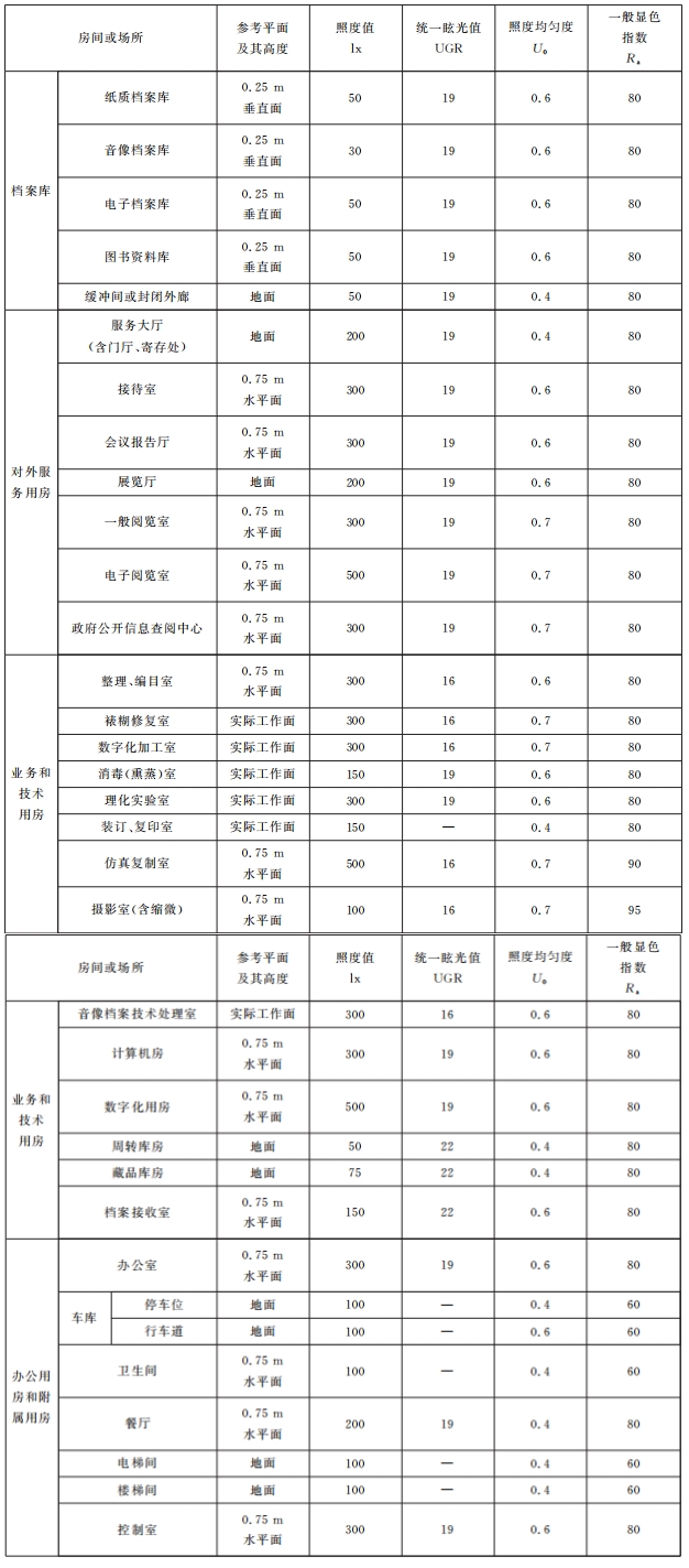 表11 檔案館常用房間或場所照明標(biāo)準(zhǔn)值