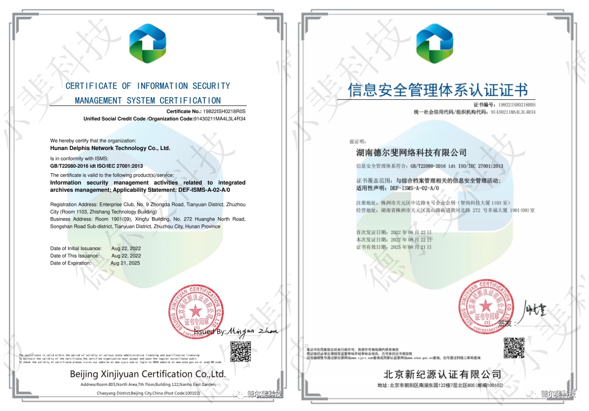 ▲2022年9月,德爾斐科技通過ISO27001信息安全管理體系認(rèn)證,榮獲ISO27001信息安全管理體系認(rèn)證證書。▲